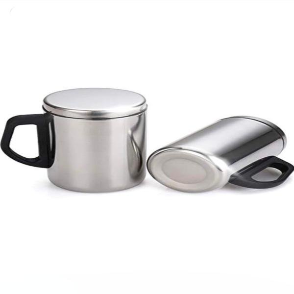 Vacuum-insulated stainless steel mug designed to lock in temperature and freshness.